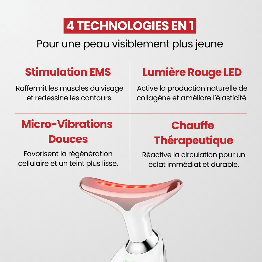 Conçu pour raffermir, lisser et illuminer votre peau grâce à la synergie des technologies LED & micro-impulsions EMS.